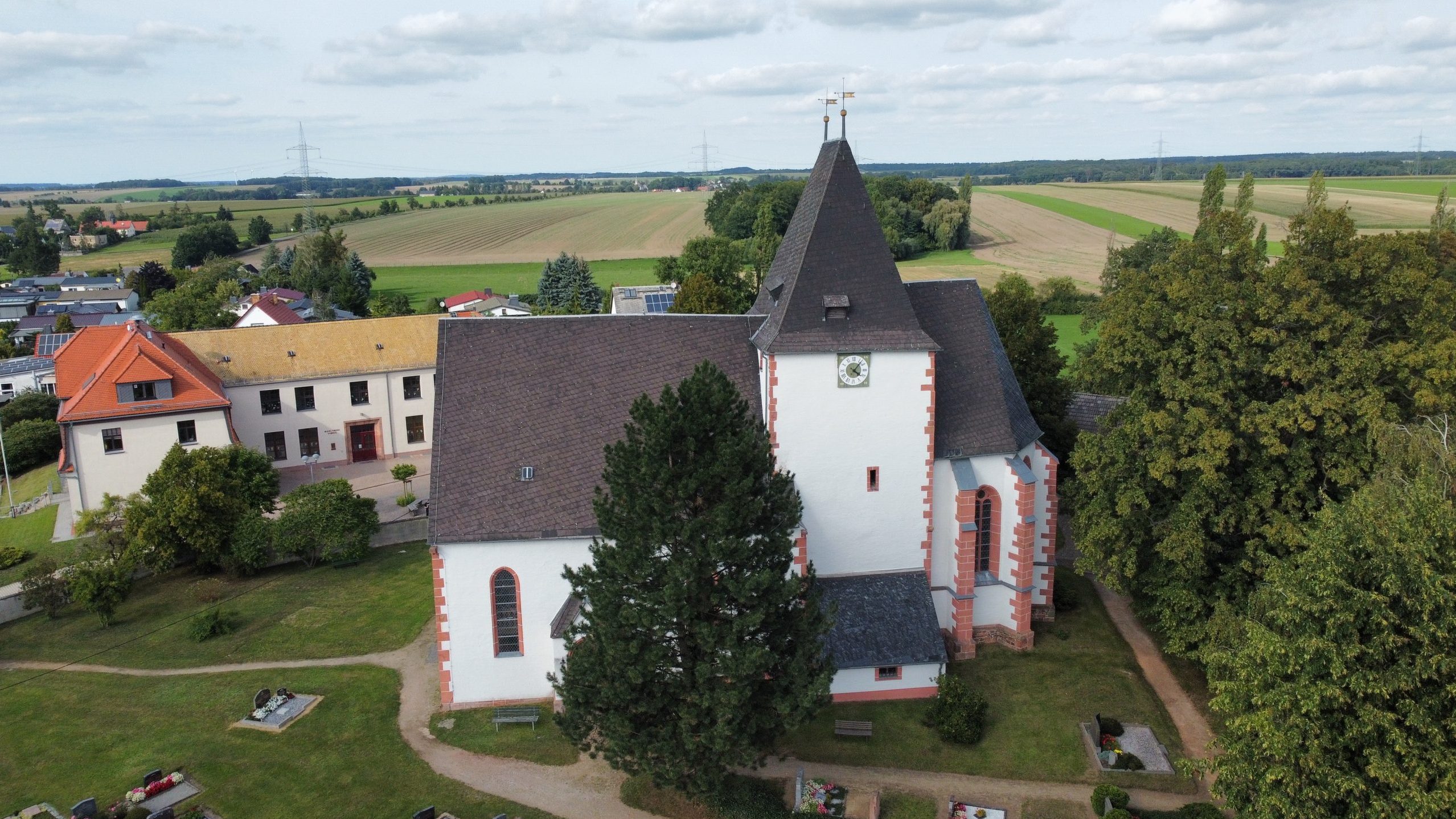 Das stark beschädigte Kirchendach wird mit Schiefer vom Pfarrhausnebengebäude repariert, dieses wiederum mit Zementersatzziegeln aus Frauendorf. 1949 er hält die Kirche eine elektrische Lichtanlage. Eine schöne Tradition entsteht: Das Aufhängen einer Erntekrone zum Erntedankfest. Begonnen hat damit Frau Martha Miersebach, die ehemalige Schul-Hausmeisterin. Fortgeführt von der Oberfränker Postfrau Marianne Meißner hat dann Frau Erna Birkhofen, vielen noch als treue Kirchnerin und liebe Seele der Gemeinde bekannt, weiter gemacht. Später gestaltete Herr Martin Bierbaum viele Jahre die Erntekrone. 2002 hat Familie Klaus Schneider und Gerhard Gorgas eine neue Erntekrone geflochten.