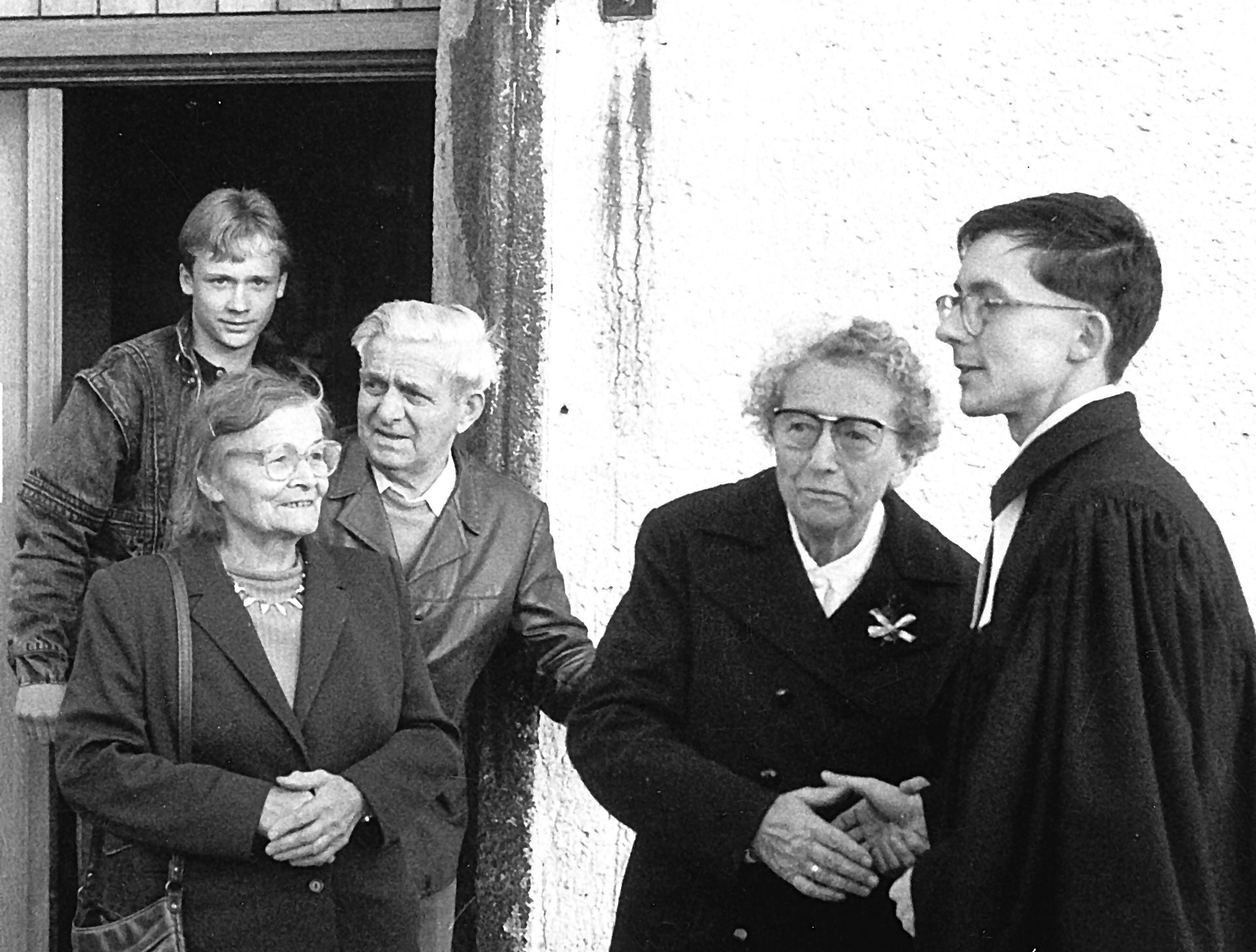 Martin Lösche wurde 1979 von Roland Lämmel abgelöst, ein rastloser „Baupfarrer“, wie ihn die Leute gern nannten. So geschah 1985 ei ne große Restaurierung der Kirche unter Pfarrer Lämmel. Er selbst schreibt dazu: “Am 27.10.1985 konnte die Kirche nach intensiver Restaurierung in einem Festgottesdienst mit anschließender Festwoche wieder eingeweiht werden. Hinter der Gemeinde lagen viele Monate mit Arbeitseinsätzen, Mühen und Entbehrungen. In der Zeit des stagnierenden Sozialismus war es nicht einfach, Firmen und Bauarbeiter zu gewinnen. Es fehlte an Baumaterial, an Baubilanzen, oftmals an den einfachsten Dingen. Dass die Kirche vor dem Verfall gerettet werden konnte, verdankt sie fleißigen, um sichtigen Gemeindegliedern, engagierten Handwerkern und Betrieben, die oft unter schwierigen und provisorischen Bedingungen arbeiten mussten – und natürlich vielen freiwilligen Helfern in unzähligen Baueinsätzen. Ein hohes Spenden aufkommen machte die finanzielle Absicherung möglich. Die Erneuerung der Kirche begann mit einer dringend notwendig gewordenen Dachreparatur, aus welcher schließlich die gesamte Neueindeckung inklusive Schalung und Reparatur der Balken wurde. Al lein das Beschaffen der Schalung war ein großes Problem. Auch die Turmkrönung, der Glockenstuhl, der Außenputz mit Silikatanstrich, Klempnerarbeiten, Blitzschutz u.v.a. gehörten dazu. Bei der Innenrenovierung wurde Holzschwammbefall an der Kassettendecke festgestellt. Die Decke musste grundlegend neu gestaltet werden. Die mit dunkler Ölfarbe gestrichenen Emporen und Bänke wurden abgelaugt, so dass sie jetzt in herrlichem Holzdekor zu sehen sind. Im Chorraum waren zusätzliche Restaurierungsarbeiten nötig. Dabei kamen die Weihekreuze und romanischen Fenstereinfassungen zum Vorschein. Ebenfalls wurde die gesamte Elektroanlage einschließlich der Bankheizung neu installiert. Auch die Orgel wurde generalüberholt…” Roland Lämmel und seine Frau Dorothea haben auch sonst bleibende Spuren bei uns hinterlassen: Kirchenmusik, Chorarbeit und Kinderarbeit war besonders Frau Lämmel wichtig. Sogar die staatlichen Stellen akzeptierten das Bemühen der Familie Lämmel um die Kinder. Nach Großrückerswalde zu gehen fiel den Lämmels nicht leicht, auch die beiden Töchter mußten sich erst an das Neue dort gewöhnen.